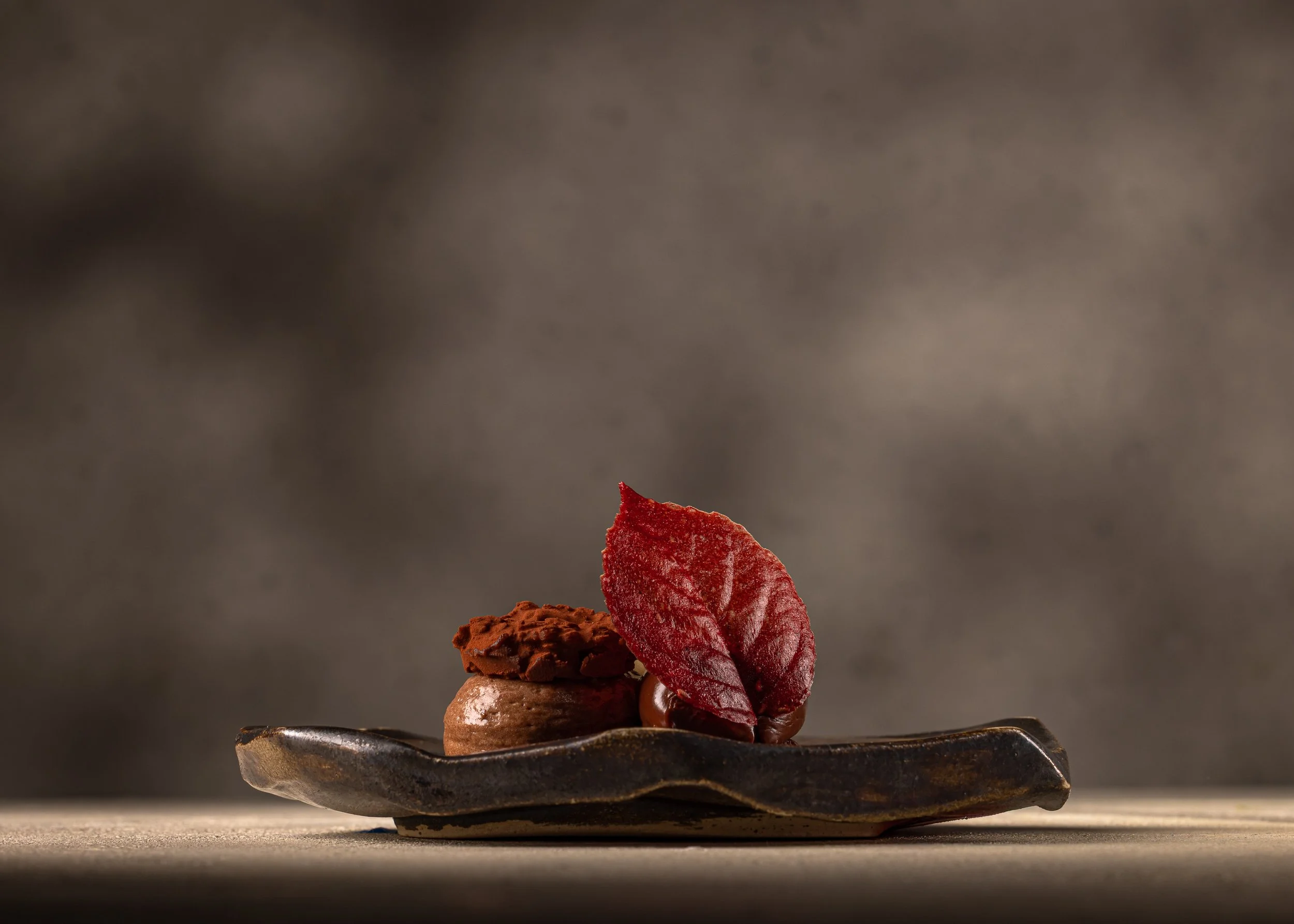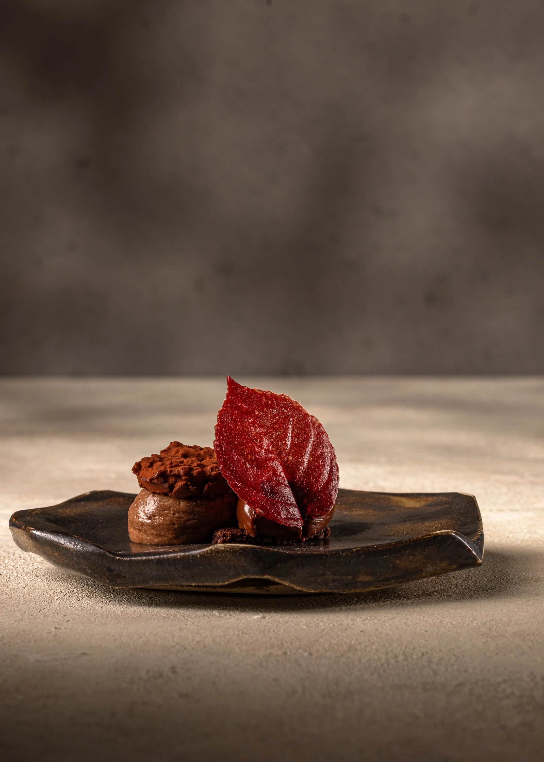 Dark chocolate and preserved raspberry dessert at 2 Michelin Star Liath.